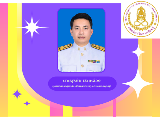 นายสุรชัย ผิวเหลือง ในตำแหน่ง ผู้อำนวยการศูนย์ส่งเสริมการเรียนรู้ระดับอำเภอ คุระบุรี